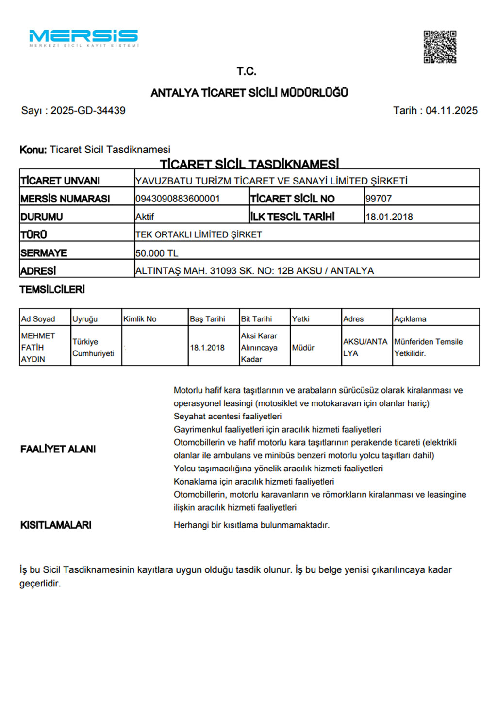 Yavuzbatu LTD, a part of our organization operating in the tourism sector since 2010, offers comprehensive solutions including airport transfers, tours, and accommodation services.